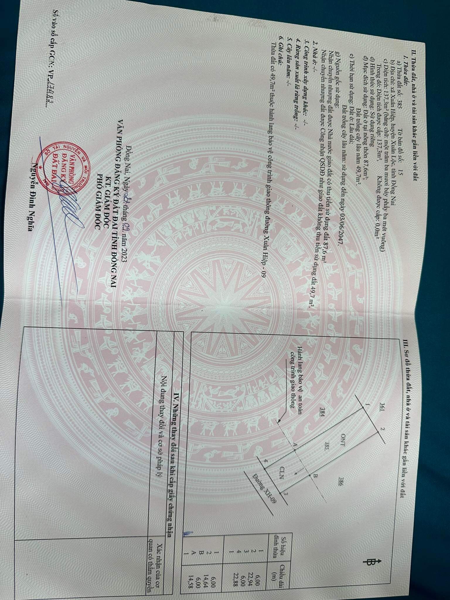 Vị trí: Xuân Hiệp, Xuân Lộc, Đồng Nai