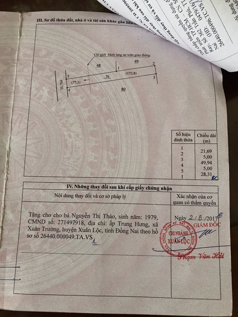 Diện tích: 5x49 mét, tỉnh lộ 766 , có nhà đẹp